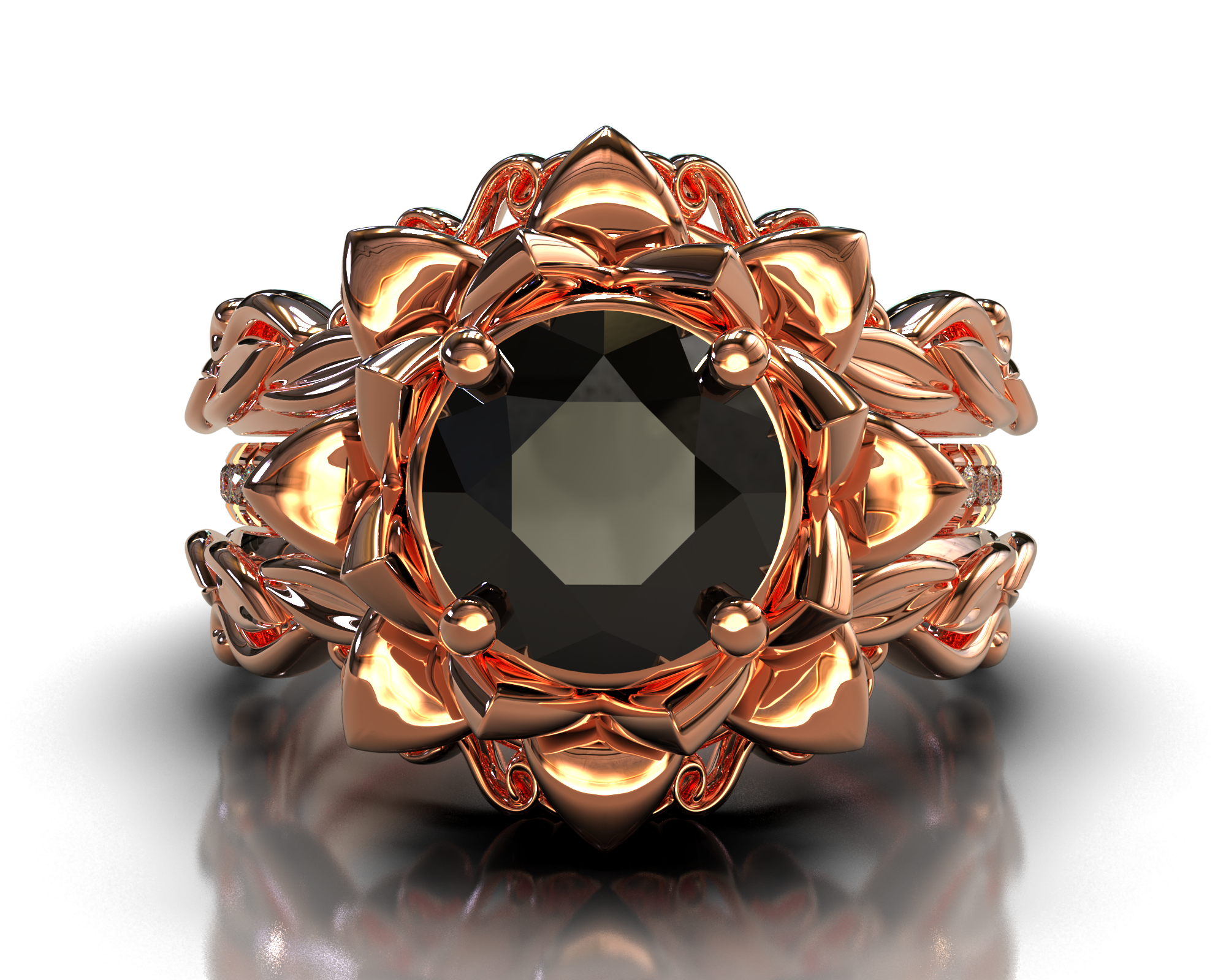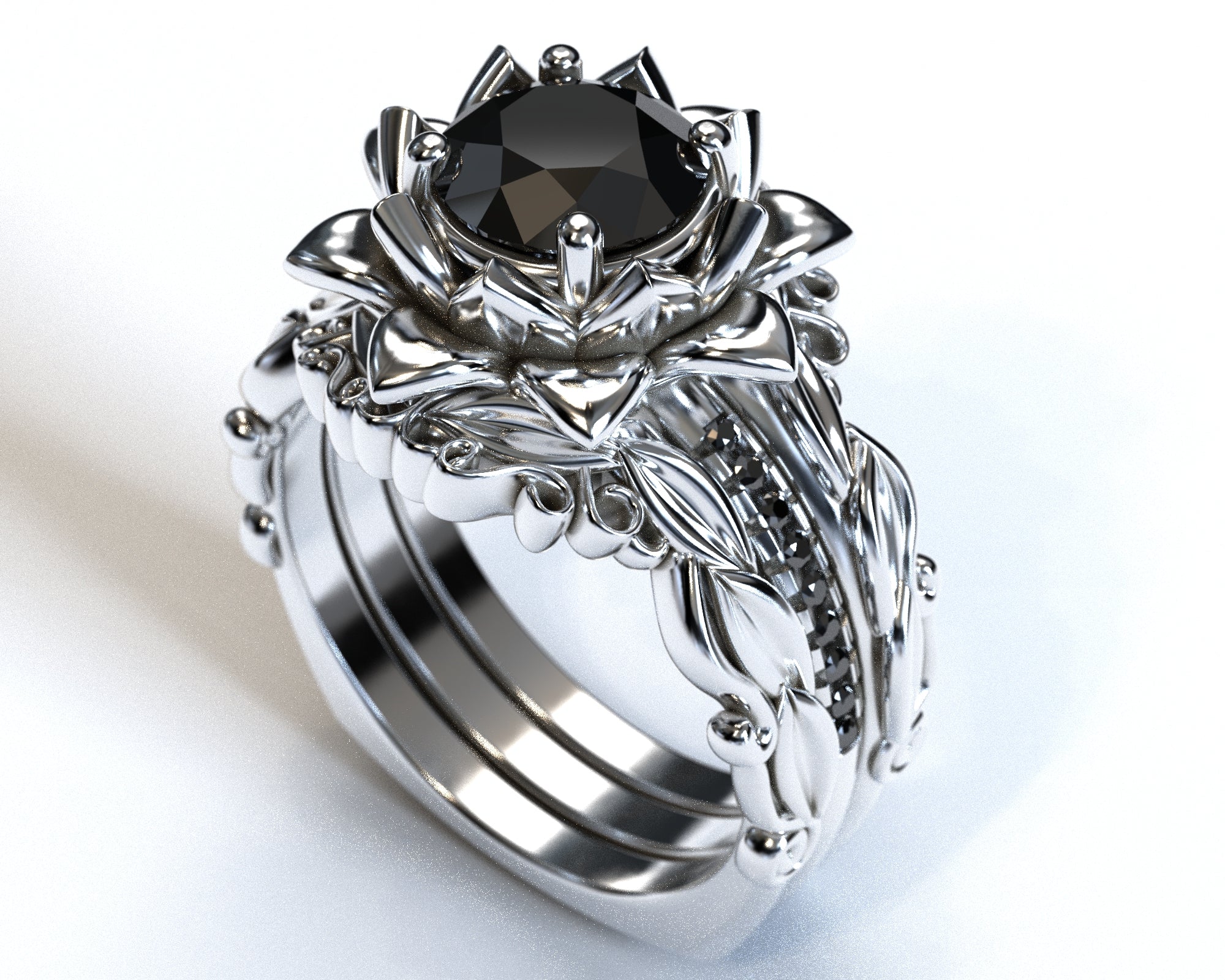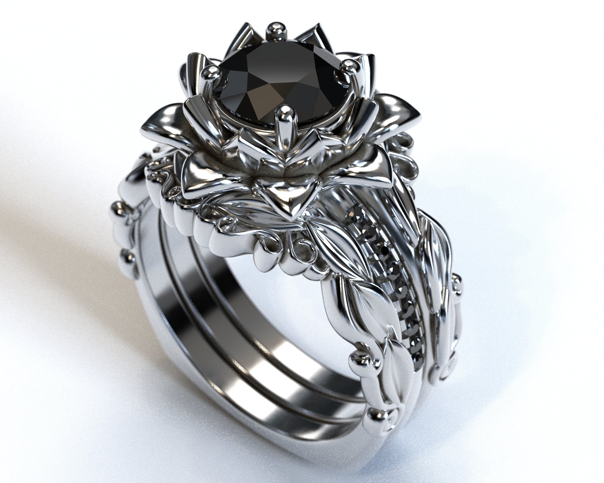 | Black Diamond Floral Wedding Ring Set is elegant and sophisticated while also being rich in minute details. With this essential piece of jewelry, you may declare your love and dedication. Touch of Quality. Vidar Boutique. |