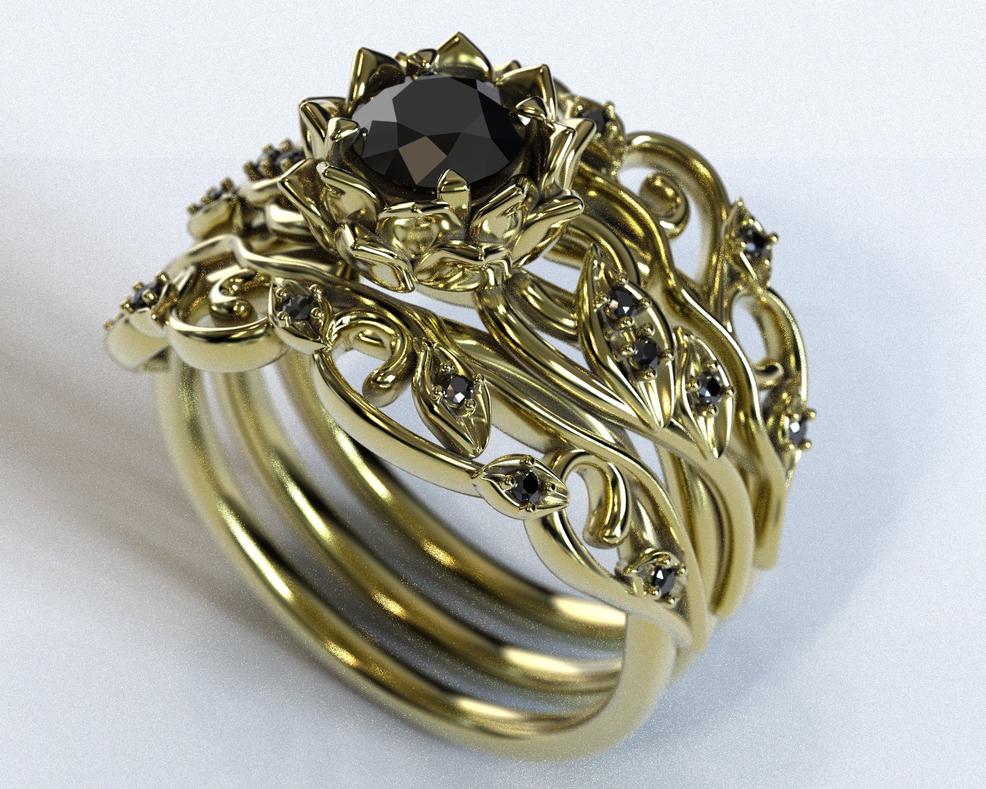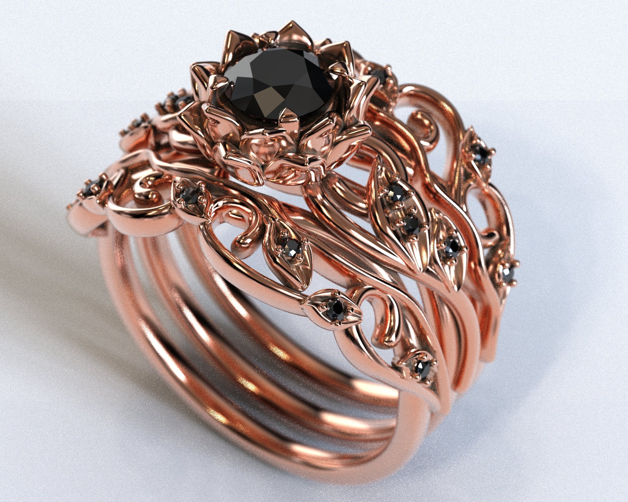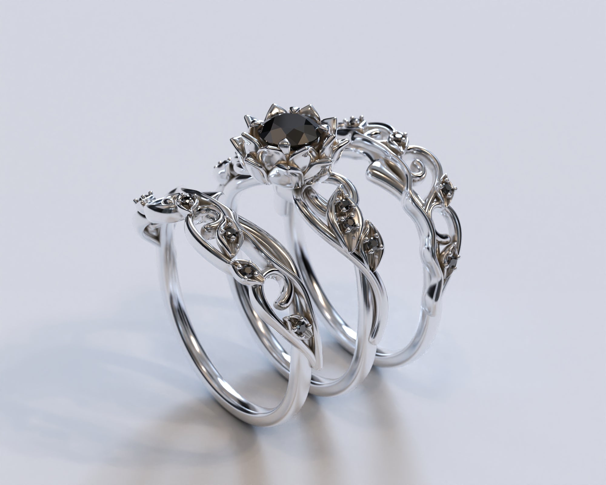 | The Black Diamond Flower Bridal Ring Set is ideal for your love. You may express your love and commitment with this perfect wedding ring set. Touch of Quality. Vidar Boutique. |