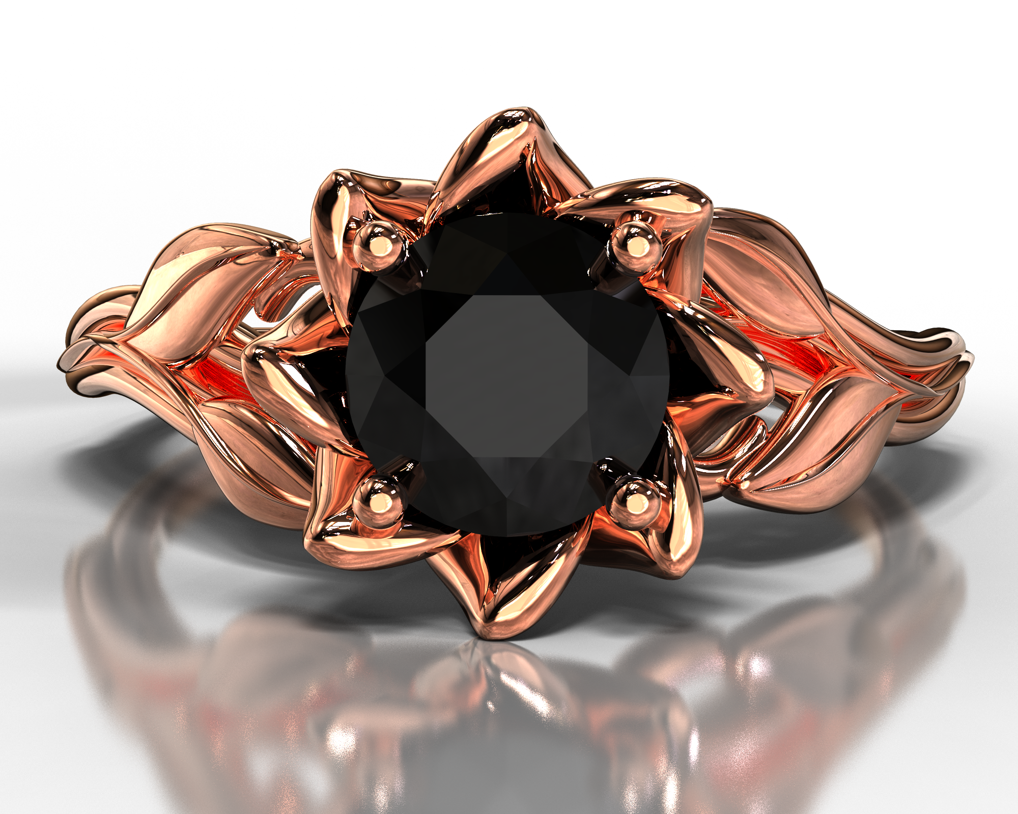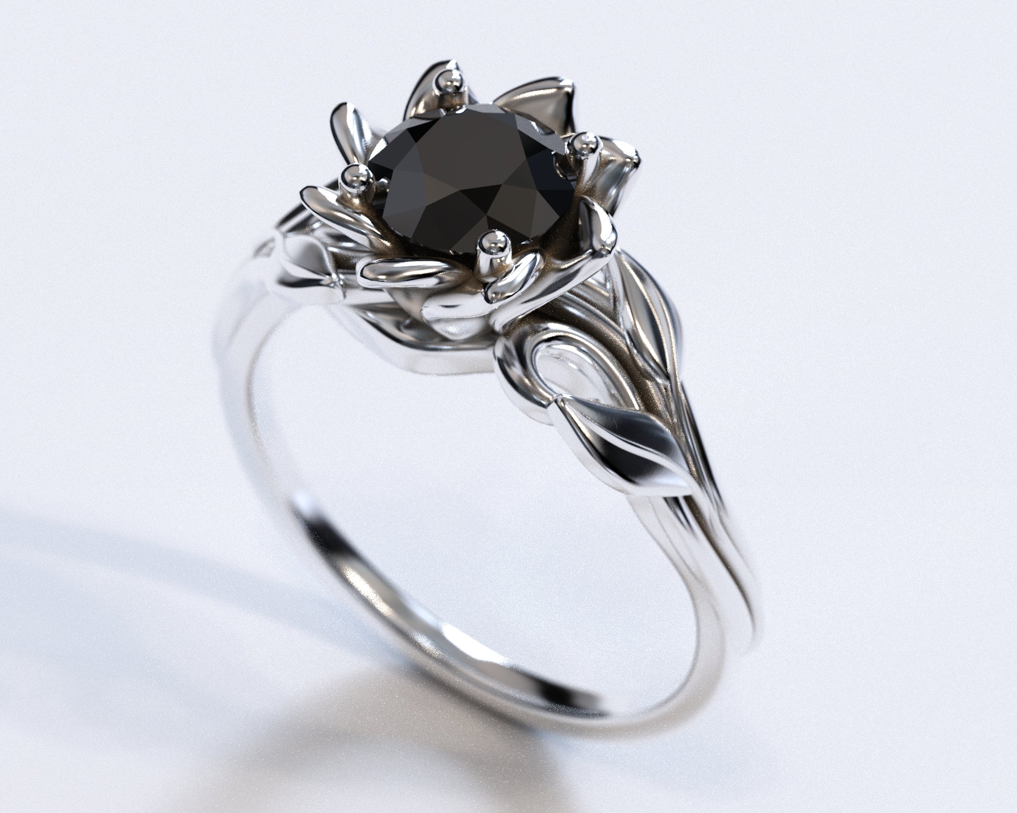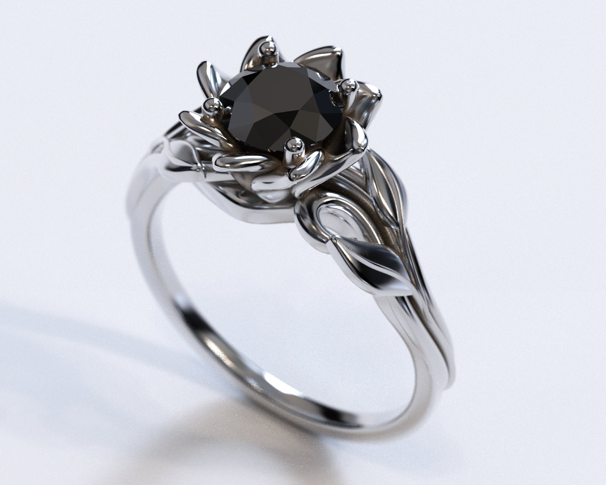 | An exceptional Black Diamond Solitaire Flower Engagement Ring produces an unrivaled, one-of-a-kind flower pattern. Touch of Quality. Vidar Boutique. |