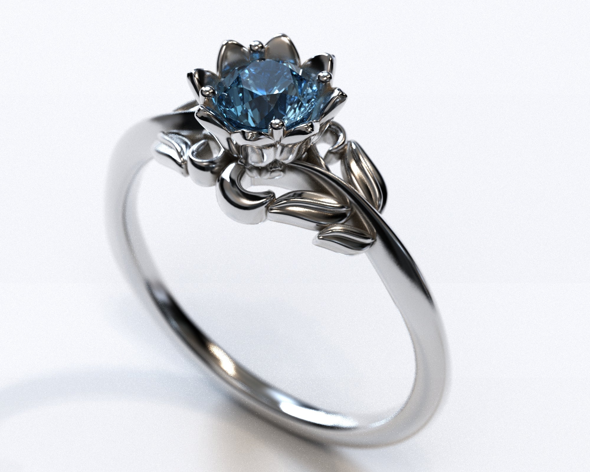 | This Blue Diamond Flower Engagement Ring With Leaves has a beautiful and unique design. Give her the best. Vidar Boutique. |