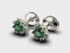 Emerald stud earrings set in a lotus shape, crafted in 14k white gold, in a classic minimalist style with nature-inspired elements. This pair serves as a perfect gift for special occasions and beautifully complements our flower engagement rings.