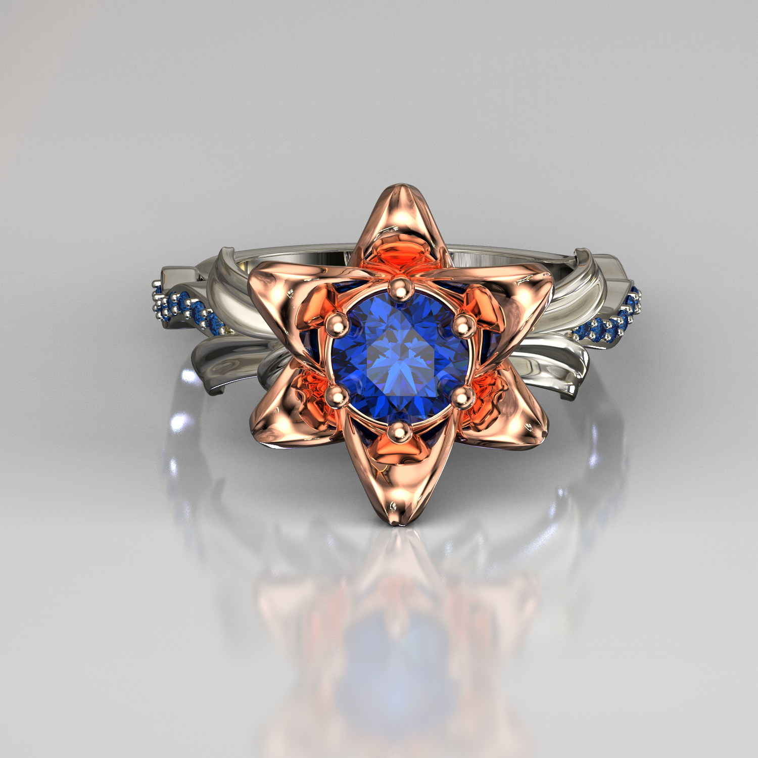 | This unique Lily Flower Sapphire Engagement Ring will be perfect for your beloved. Give her the best. Vidar Boutique. |