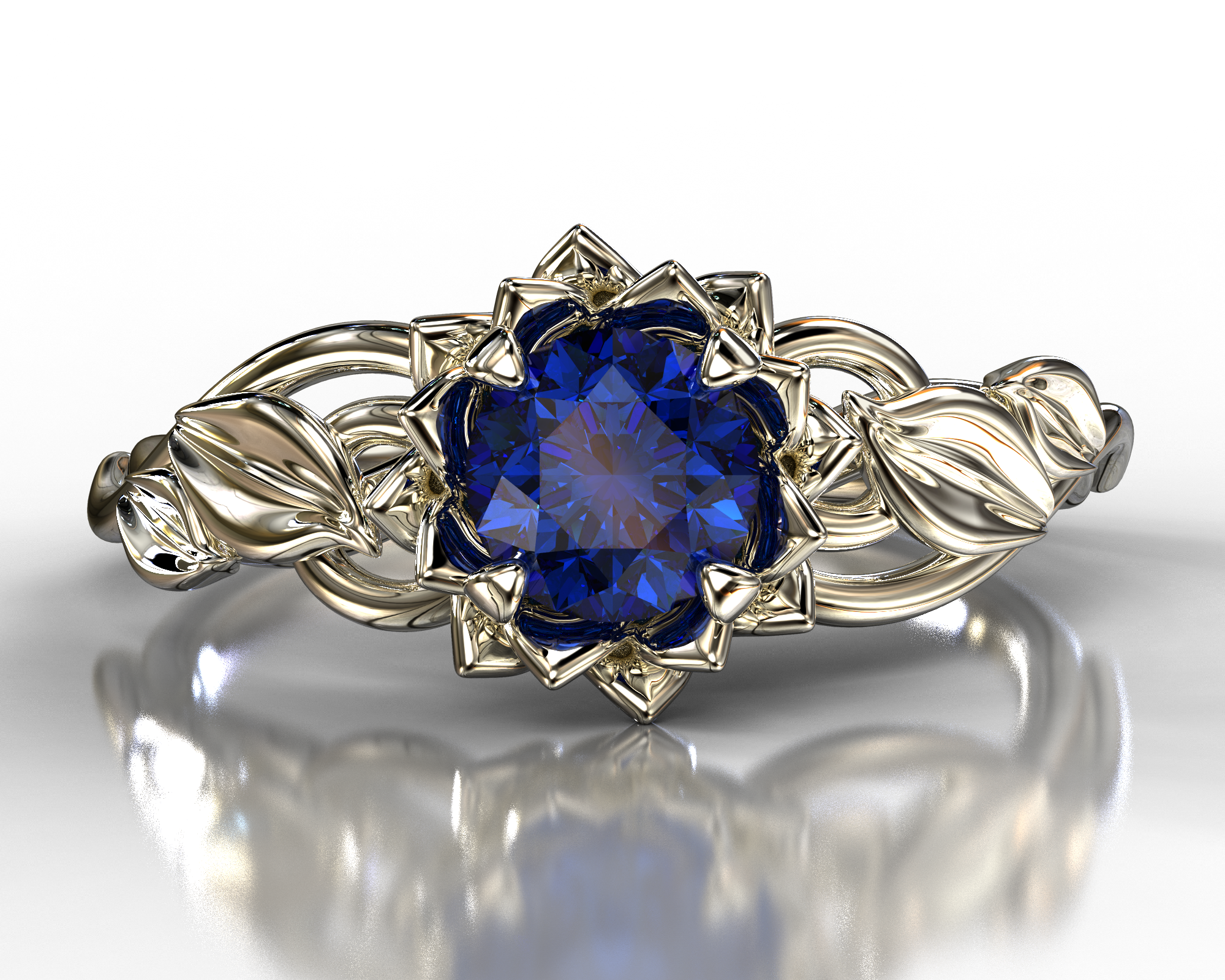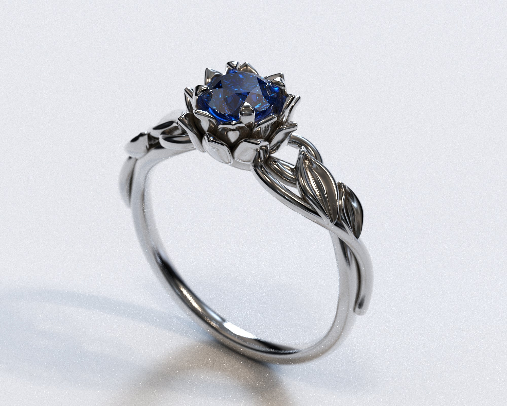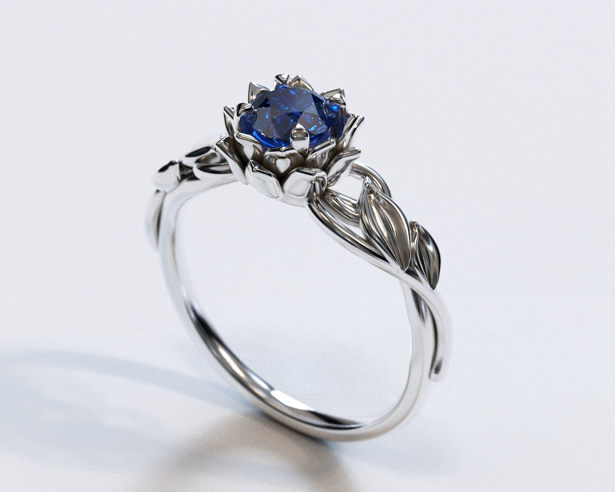 | This Lotus Flower Blue Sapphire Engagement Ring has an exclusive and unique design. Give her the best. Vidar Boutique. |