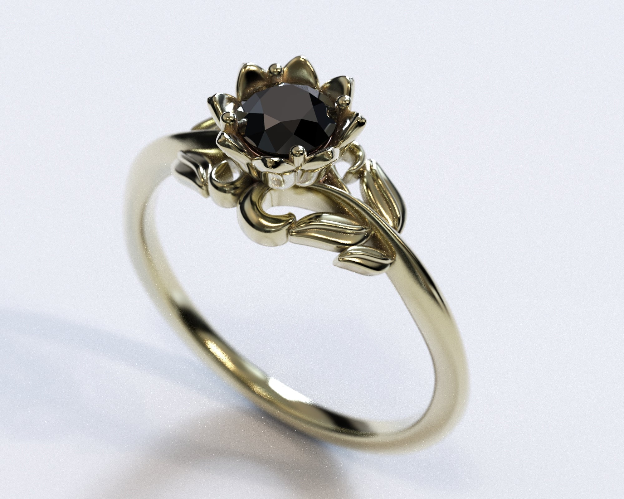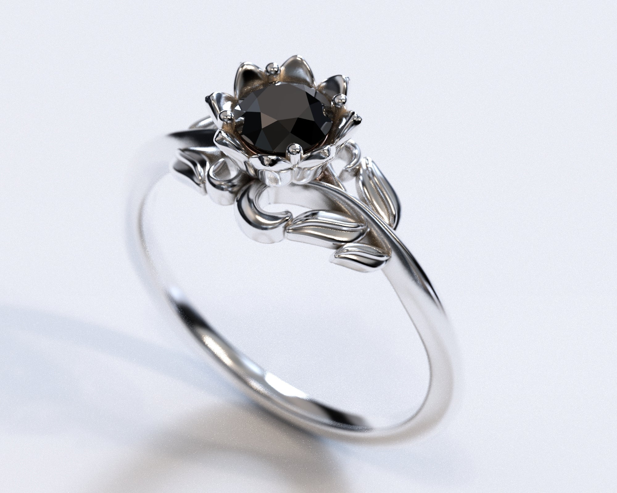 | The highly sought-after black diamond set in a flower band makes this contrastingly styled ring a superb choice for your woman. Nature-Inspired Black Diamond Flower Engagement Ring is inspired by nature and uses an original color combination you won't find anywhere else. Touch of Quality. Vidar Boutique. |
