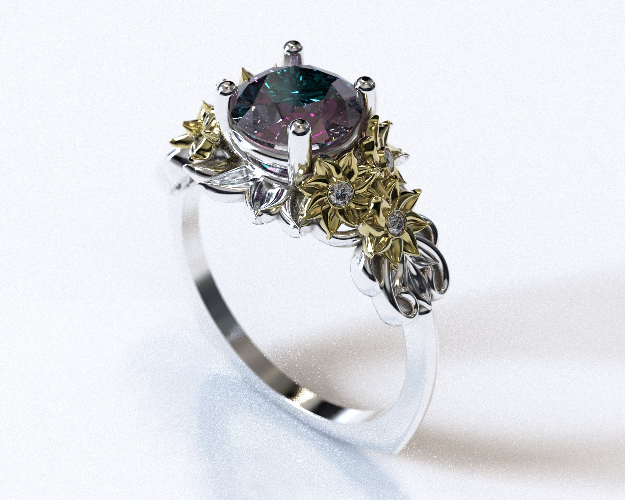 | The ideal pick for your love is this Two Tone Alexandrite Flower Engagement Ring. Offer Her your best. Vidar Boutique. |