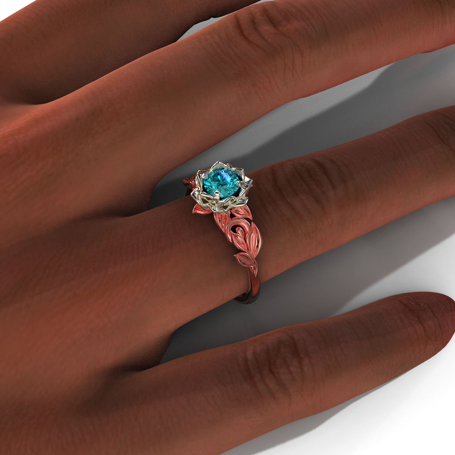 | The two-Tone Teal Sapphire Flower Engagement Ring has a beautiful and unique design. Choose this magnificent piece of handcrafted jewelry if you want an engagement ring that exhibits a distinctive style. Touch of Quality. Vidar Boutique. |